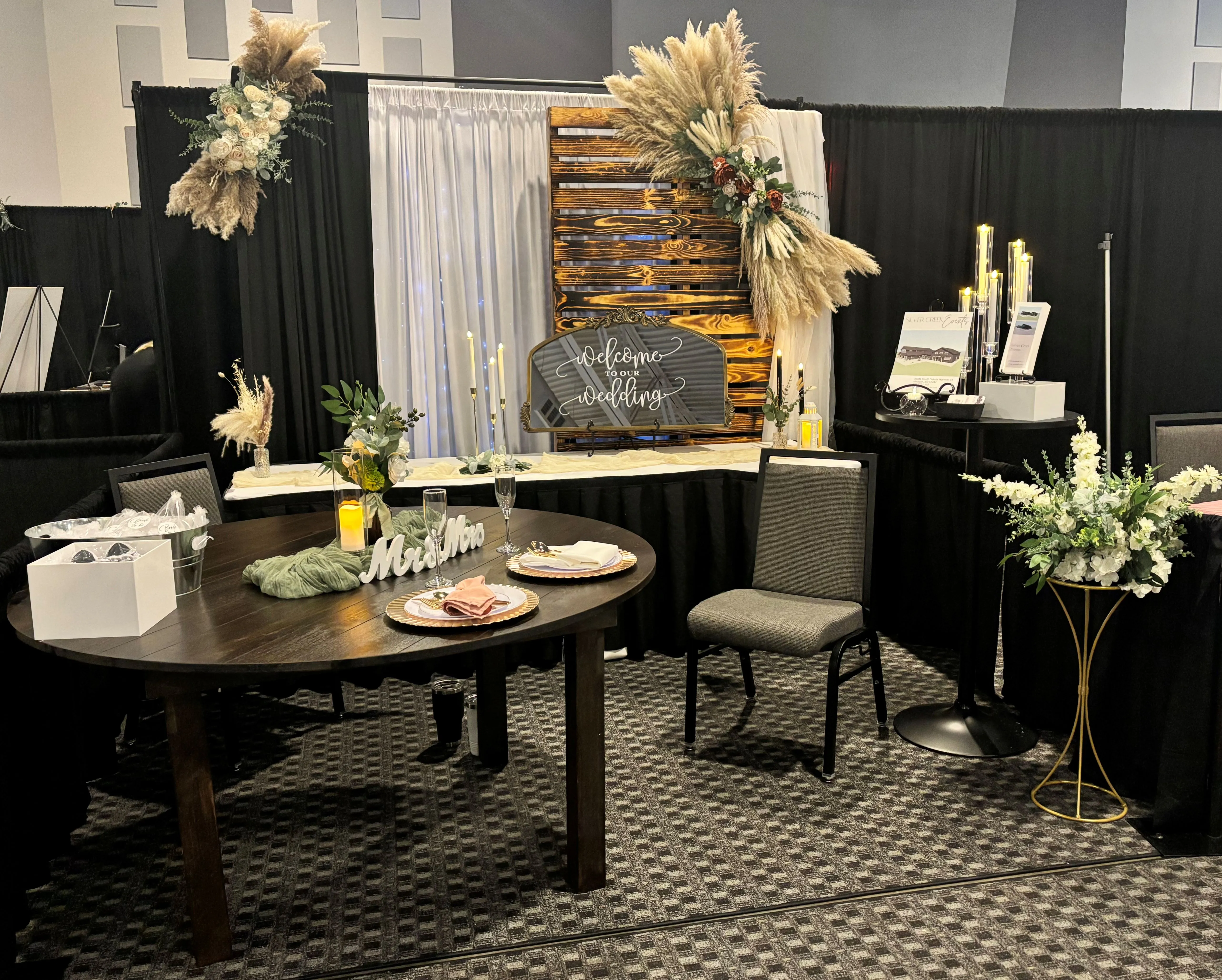 We had an amazing time meeting new people at the Sioux Empire Wedding Network Wedding show. The fashion show was stunning. Already looking forward to the next one in February. We featured our tables and check out all of the decoration I created from the items you can choose from for you special event. Just a little something I threw together!
